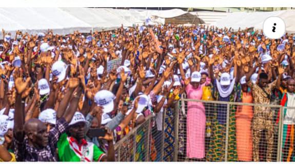 The Yayi Youth Vanguard, numbering over 5,000 and drawn from the 20 local government areas of Ogun State, assembled at the popular Panseke skating ground in Abeokuta, wearing white face caps inscribed with “Ogun Youths For Yayi.”