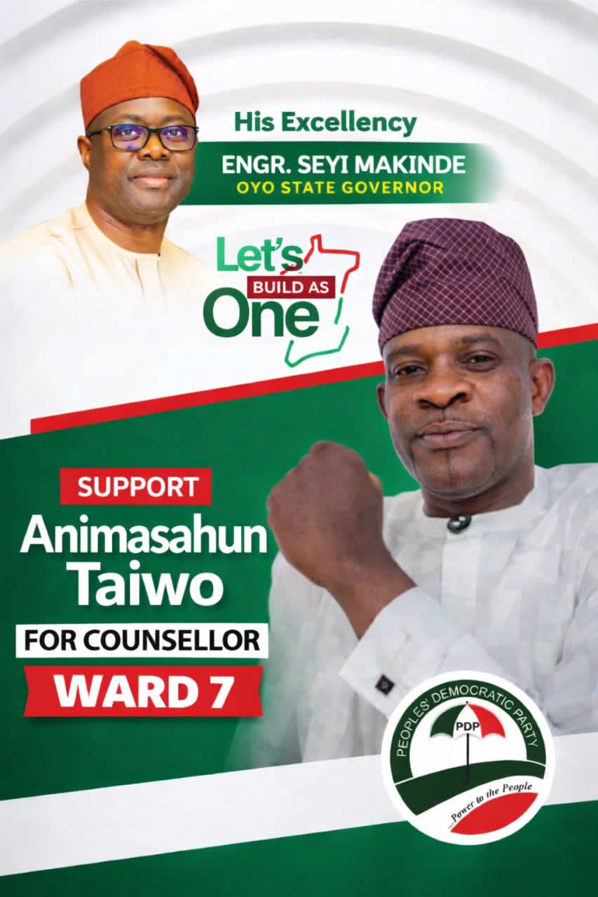 As the campaign unfolds, Animasahun Taiwo seeks the mandate, confidence, and support of the people of Ward 7 to write a new chapter of progress and shared prosperity.