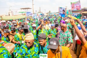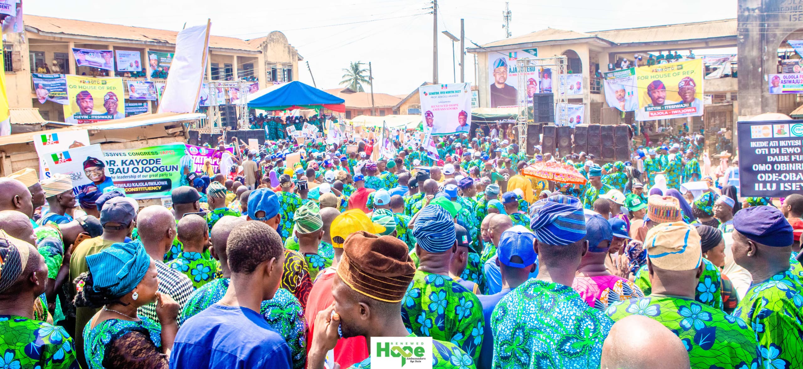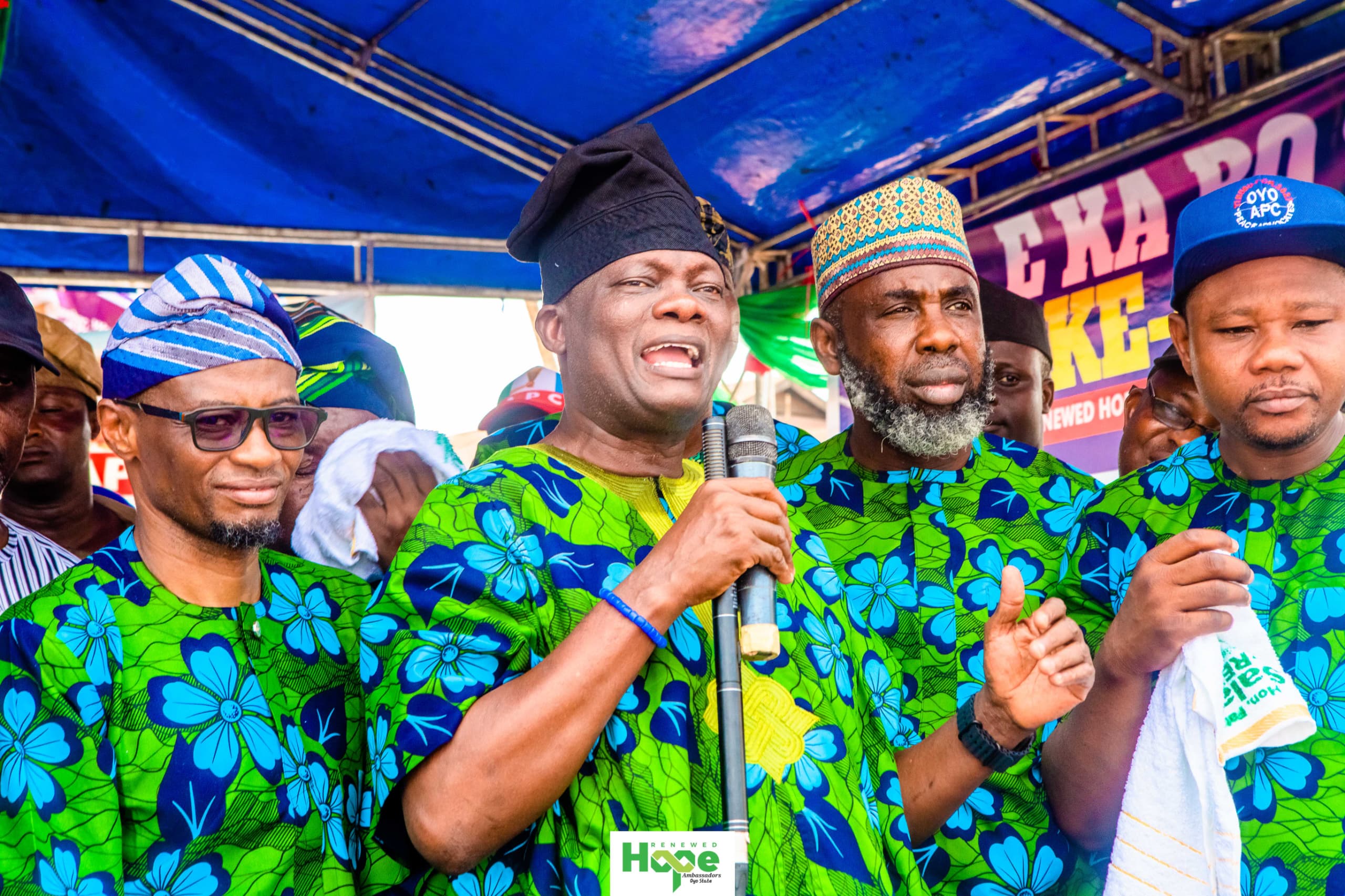 The mobilisation train of the Renewed Hope Ambassadors and the APC later moved to the Akinyele/Lagelu Federal Constituency, where party leaders continued to preach peace, unity, and grassroots mobilisation in support of President Tinubu’s 2027 re-election bid.