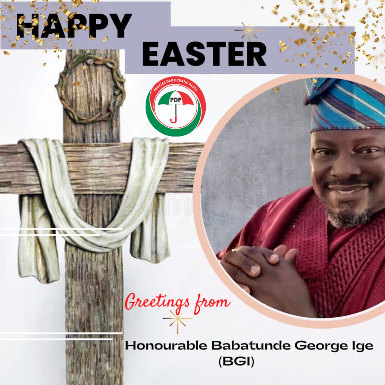 Ibadan South West State Constituency 1 Aspirant of PDP, Honourable Babatunde George Ige , has congratulated Christians in Ibadan South West Local Government for witnessing another Easter season.