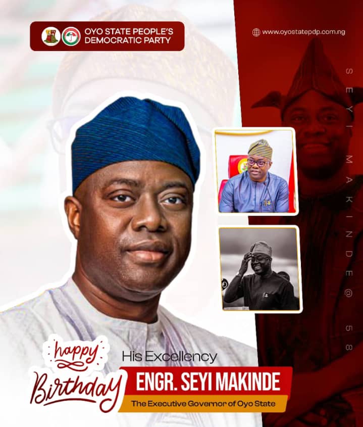 Oyo State PDP chieftain, Hon. Kehinde Giwa, has extended warm congratulations to His Excellency, the Executive Governor of Oyo State, Engr. Oluseyi Abiodun Makinde, on the occasion of his 58th birthday.