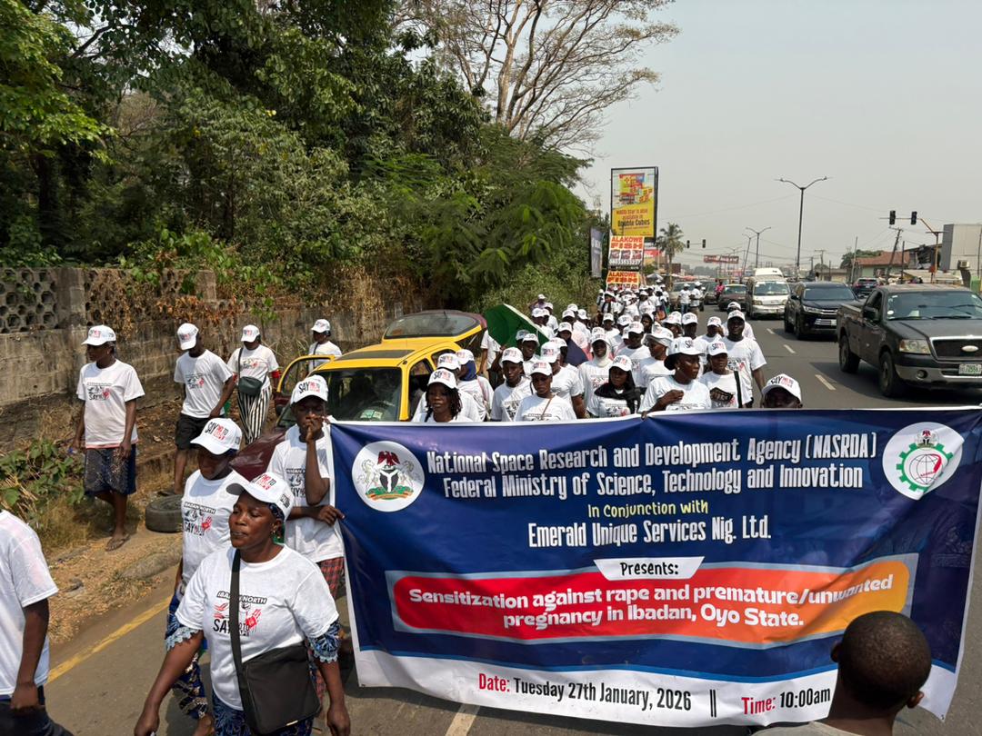 In furtherance of the renewed hope agenda of President Bola Ahmed Tinubu, the Federal Ministry of Science, Technology and Innovation through the National Space Research and Development Agency (NARSDA) collaborated with two different organizations on rape awareness and unwanted pregnancy sensitization, as well as Cleaning activities across a number of communities in Ibadan, Oyo State.