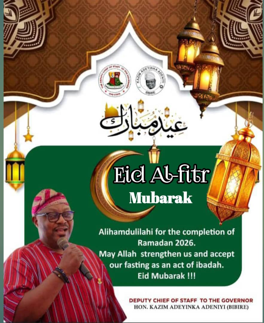 Hon. Kazim Adeyinka Adeniyi Bibire, Deputy Chief of Staff to Governor Seyi Makinde, has extended warm felicitations to the Muslim Ummah across Oyo State, Nigeria, and the world on the occasion of Eid-el-Fitr.
