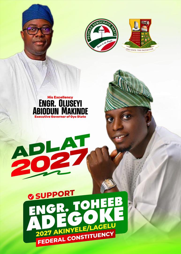As the PDP prepares to make a critical choice for the future, we call upon all leaders, delegates, stakeholders, and loyal members across Akinyele and Lagelu to rally behind this outstanding aspirant. Engr. Toheeb Adegoke is not running for office out of ambition; he is answering a sincere call to serve.
