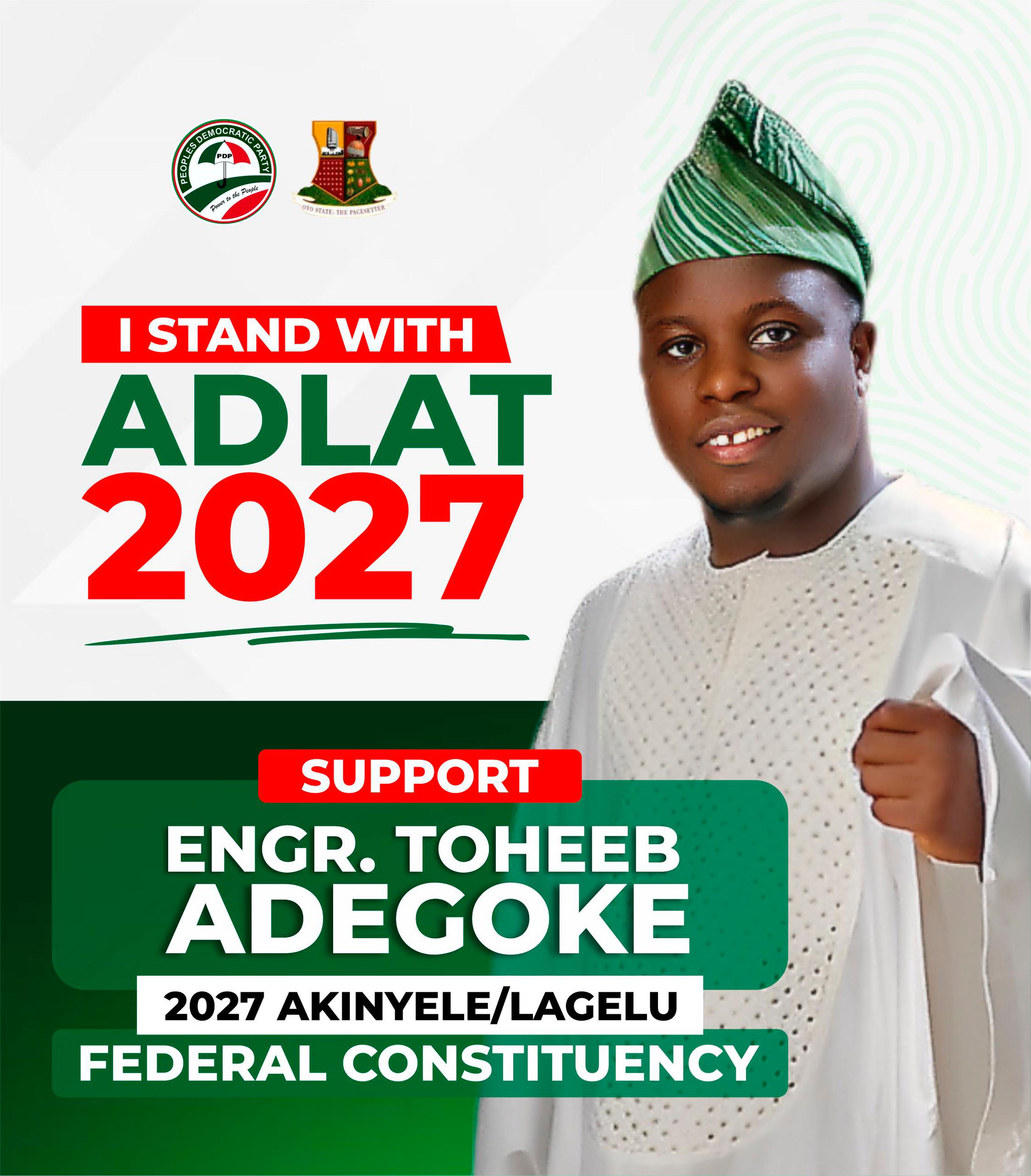 In the build-up to the 2027 elections, Engr. Toheeb Adegoke ADLAT is steadily gaining recognition as a people oriented leader with a clear and actionable roadmap for the transformation of Akinyele/Lagelu Federal Constituency. Rooted in a philosophy that prioritizes the welfare of the people above all else, Engr Toheeb Adegoke ADLAT’s vision is centered on delivering impactful governance that touches every community.