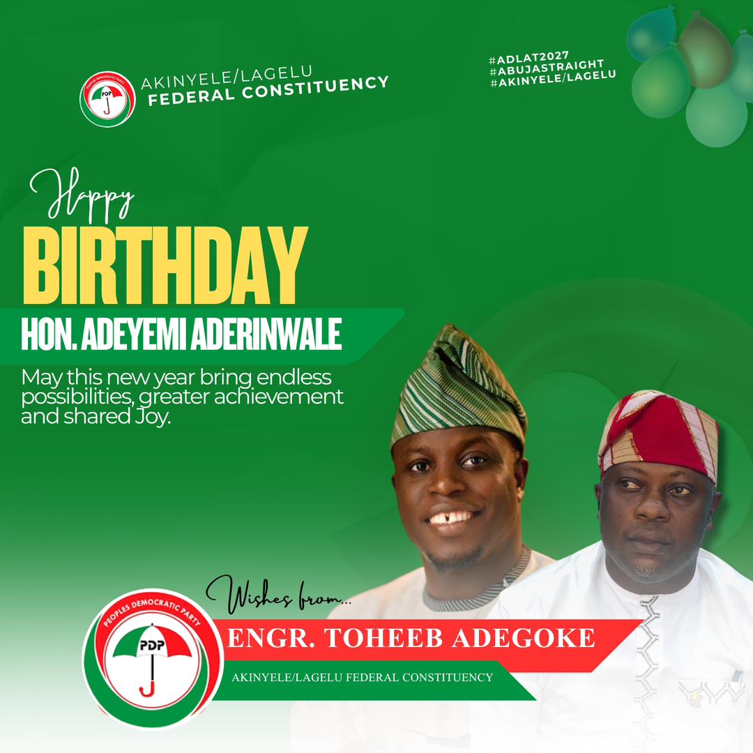 Engr. Toheeb Adegoke has extended warm birthday wishes to Hon. Adeyemi Aderinwale, popularly known as Oole, the Chief of Staff of Akinyele Local Government, describing him as a committed administrator whose influence continues to strengthen governance at the grassroots.