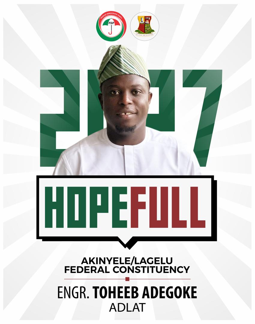 As the People’s Democratic Party (PDP) looks ahead to 2027 with renewed hope for Akinyele/Lagelu Federal Constituency, one name shines with distinction Engr. Toheeb Adegoke. More than a political aspirant, he is a bold visionary, a servant-leader whose unwavering integrity, proven competence, and grassroots connection have earned him the trust and admiration of the people.