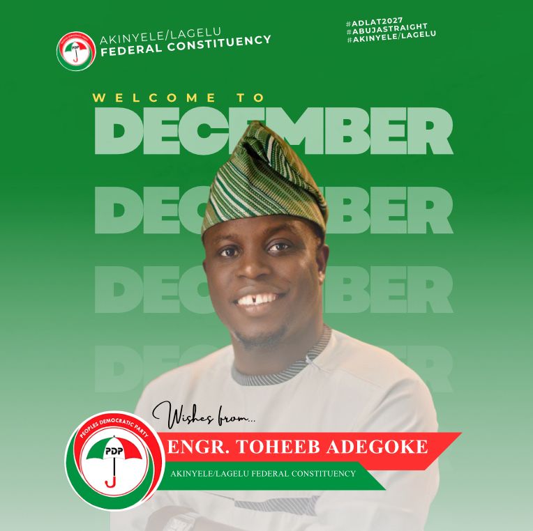 Engr. Toheeb Adegoke welcomes the entire Akinyele/Lagelu constituency into the new month of December with heartfelt appreciation and a clear sense of purpose.