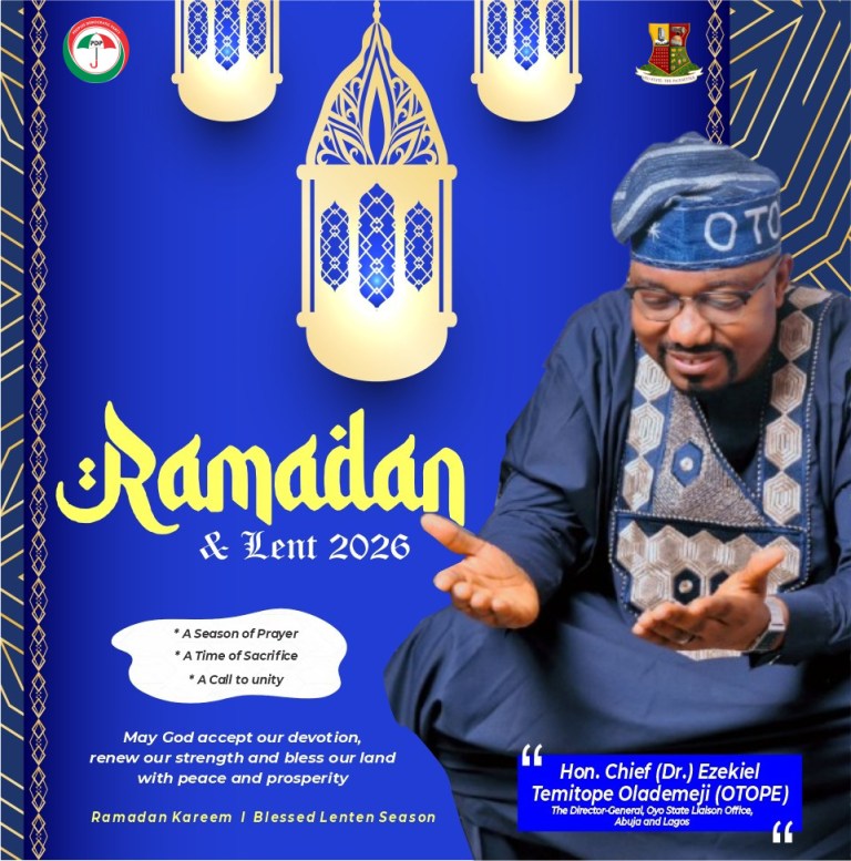 As the holy month of Ramadan and the solemn season of Lent converge in 2026, Hon. Chief (Dr.) Ezekiel Temitope Oladimeji, popularly known as OTOPE, has extended heartfelt felicitations to his constituents in Egbeda/Ona-Ara Federal Constituency and the entire Muslim and Christian faithful in Oyo State.