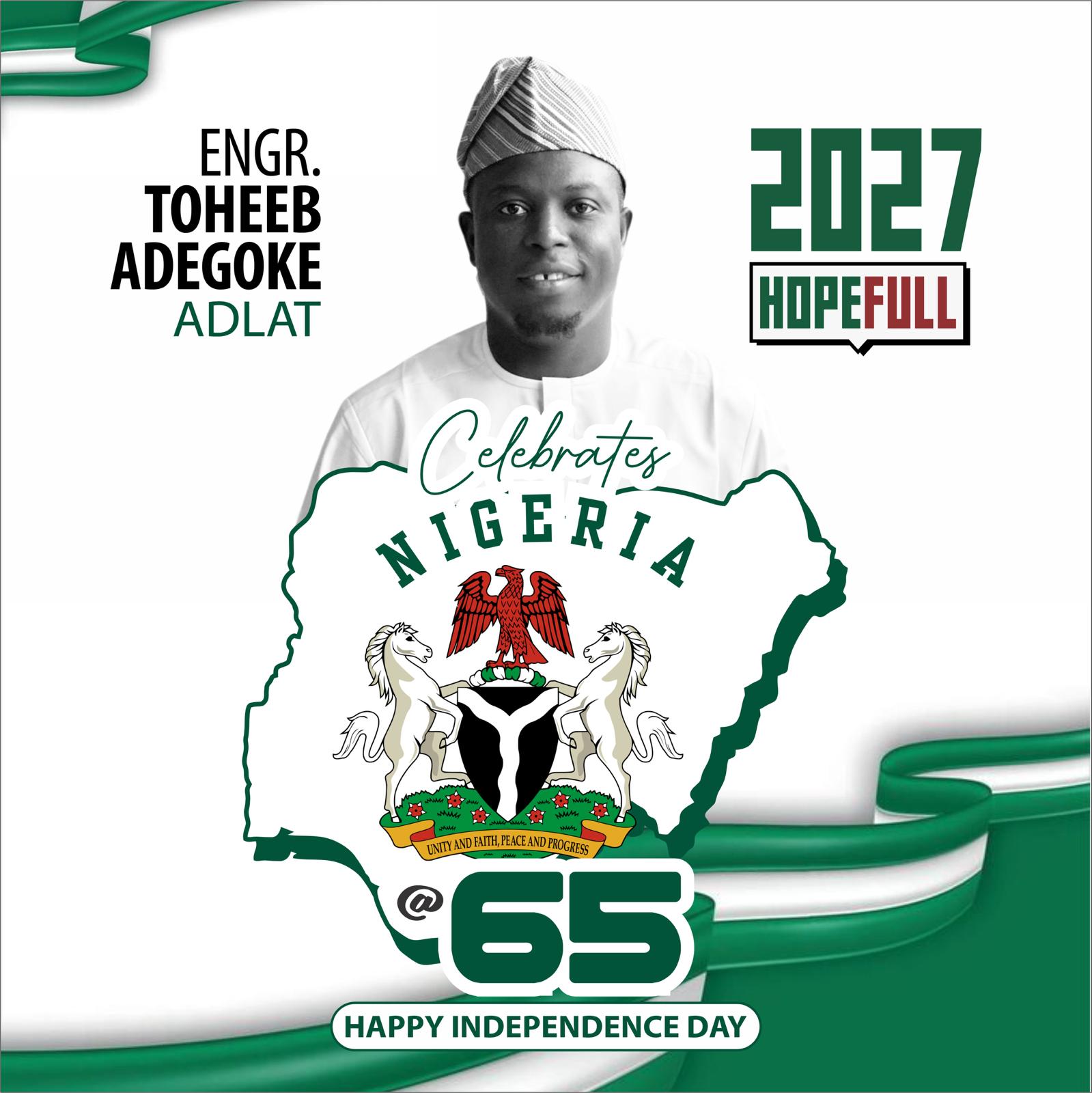 On this momentous occasion of Nigeria’s 65th Independence Anniversary, Hon. Engr. Toheeb Adegoke Adlat, hopeful for Akinyele/Lagelu Federal Constituency, extends heartfelt felicitations to the people of Akinyele/Lagelu Federal Constituency, the residents of Oyo State, members of the Peoples Democratic Party (PDP), and indeed to all Nigerians across our beloved nation.