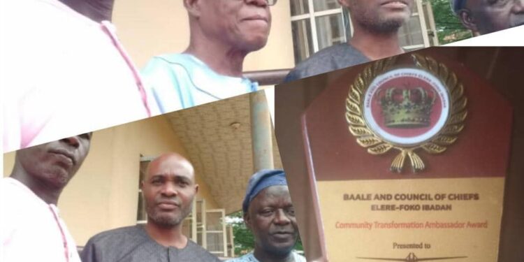 In a remarkable show of appreciation for selfless service and dedication to grassroots development, Hon. Fapetu Stephen Adedayo has been conferred with the prestigious Community Transformation Ambassador Award by the Baale and Council of Chiefs of Elere-Foko, Ibadan.