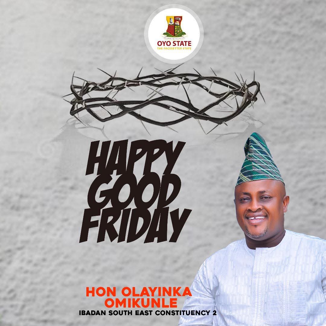 As the representative of Ibadan South East Constituency 2 in the Oyo State House of Assembly, Hon.Olayinka Omikunle congratulates Christians globally on Good Friday.