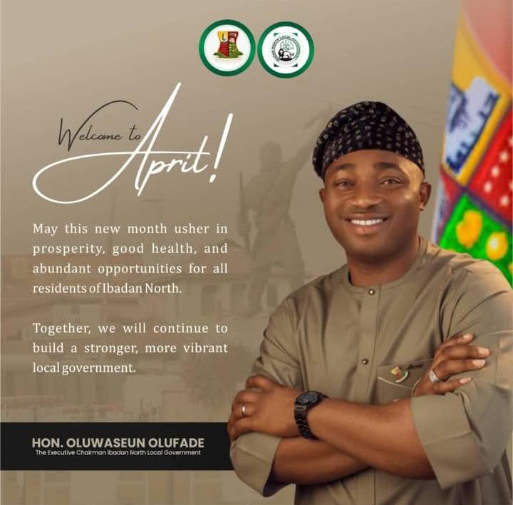 The Executive Chairman of Ibadan North Local Government, Hon. Oluwaseun Olufade, has extended warm greetings to residents, staff, and the entire people of the council area as they usher in the month of April.