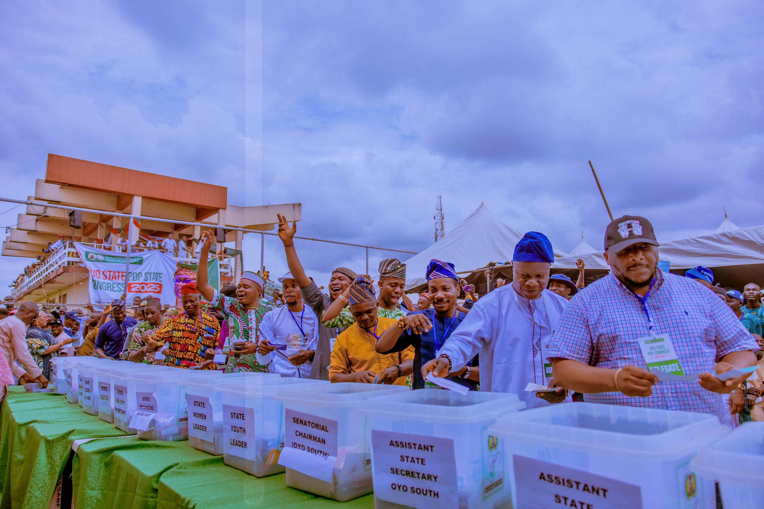 The lawmaker, who was also a delegate at the peaceful election held at the Lekan Salami Sports Complex, Adamasingba, Ibadan, on Monday, September 30, 2025, cast his vote alongside other party delegates from Ibarapa Central Local Government Area.