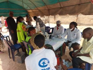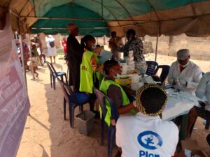 The health outreach offers services including blood pressure and blood sugar checks, malaria testing and treatment, eye screening, and general medical advice. Beneficiaries also receive education on preventive healthcare practices and lifestyle management.