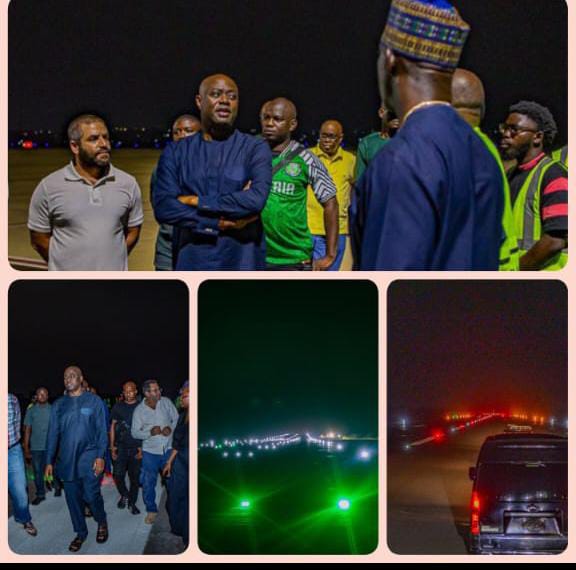 In a statement shared on his verified social media platforms following the late-night inspection, the governor said the installation of the lighting system forms a key component of the airport’s ongoing infrastructure upgrade.