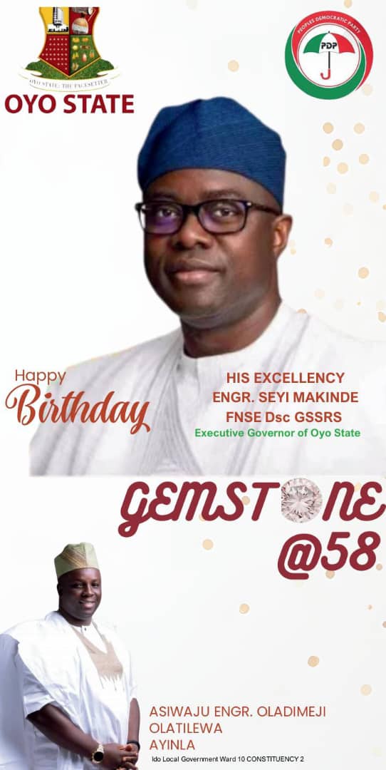 As Governor Seyi Makinde clocks 58, tributes continue to pour in, celebrating a leader widely regarded as a true change agent. Among the voices is a light to behold from one of the warlord local government, Ido LG, Asiwaju Oladimeji Olatilewa Ayinla, specifically from ward 10, who describes Makinde as the “Joseph of Oyo State” — a leader prepared for the moment, tested by challenges, and equipped with foresight to manage seasons of scarcity and abundance.