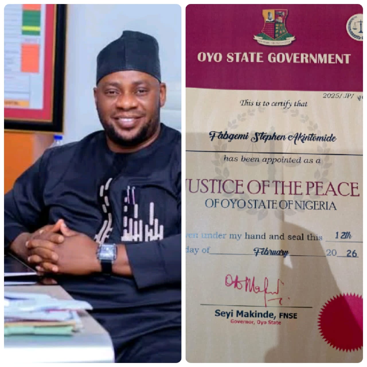 “I am deeply honoured by this appointment and grateful to His Excellency, Governor Seyi Makinde, for finding me worthy of this responsibility. This recognition strengthens my resolve to continue working for peace, justice, and equitable development in Oyo State,” he said.