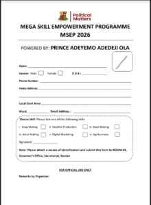 This year’s celebration promises to be even more impactful as the Mega Skills Empowerment Programme (MSEP) 2026 takes centre stage. The programme is designed to equip participants with practical, income-generating skills of their choice, thereby fostering self-reliance, entrepreneurship, and economic growth within Oyo State.