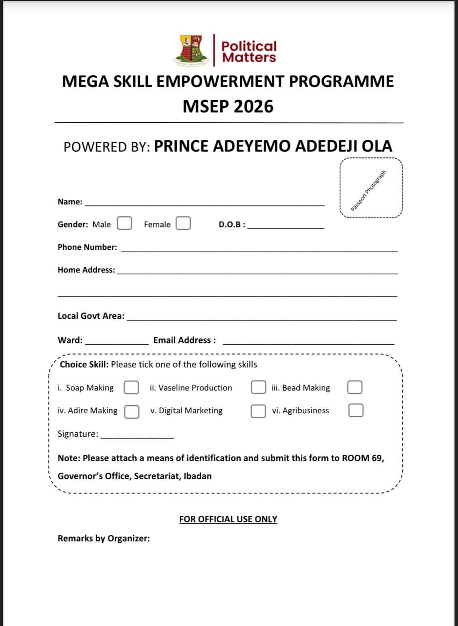 All is now set for the Mega Skills Empowerment Programme (MSEP) 2026, a Special Birthday Empowerment Initiative in celebration of Prince Adeyemo Adedeji Ola.