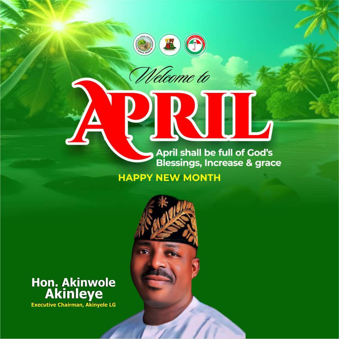 The Executive Chairman of Akinyele Local Government, Hon. Akinwole Akinleye, has extended his warm greetings to residents of the council area as the month of April begins.