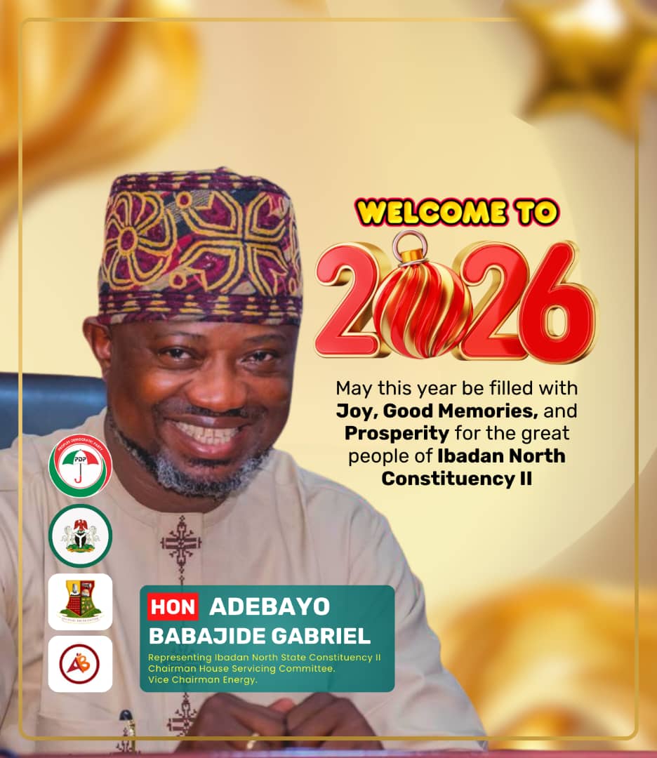 Hon. Adebayo Babajide Gabriel concluded by wishing the people of Ibadan North and Oyo State a peaceful, prosperous, and fulfilling New Year, praying that 2026 brings renewed hope, success, and greater opportunities for all.