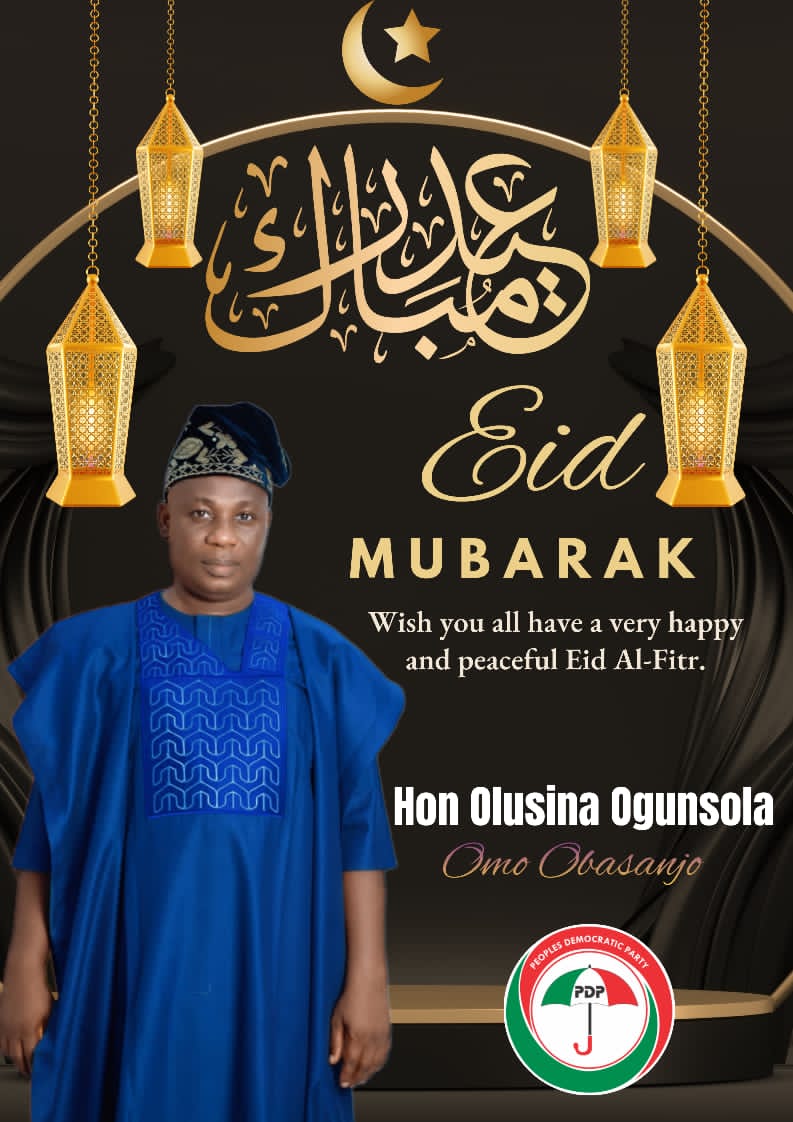 Oluyole Federal Constituency Aspirant, Hon. Olushina Ogunsola (Omo Obasanjo), has extended warm greetings and heartfelt congratulations to Muslims in Oluyole Local Government and across Oyo State on the joyous occasion of Eid-el-Fitr, marking the successful completion of the holy month of Ramadan.