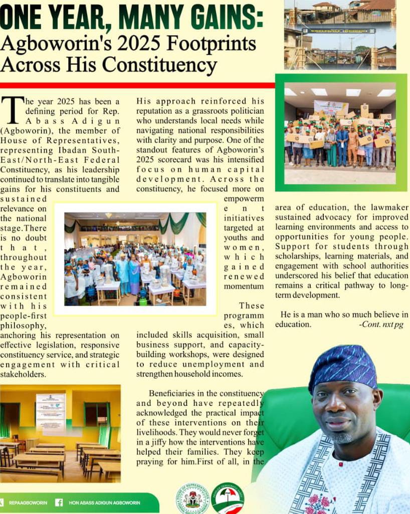 As the year draws to a close, many constituents view 2025 as another solid chapter in Agboworin’s ongoing commitment to service. While challenges remain, his achievements over the year have reinforced public confidence in purposeful representation and have set a foundation for even greater impact in the years ahead.