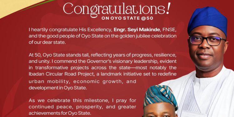 “As we celebrate Oyo @50, we are not only looking back with gratitude but also looking forward with confidence. Governor Seyi Makinde has laid a solid foundation that future administrations can build upon, setting a new pace for sustainable development, accountability, and good governance,” Dr. Glorious stated.