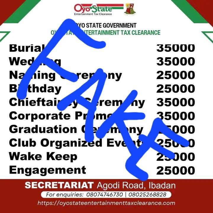 Members of the public have been advised to discountenance a viral post that suggests that oyo state government will tax the populace for social activities such as burial, naming ceremonies and weddings.