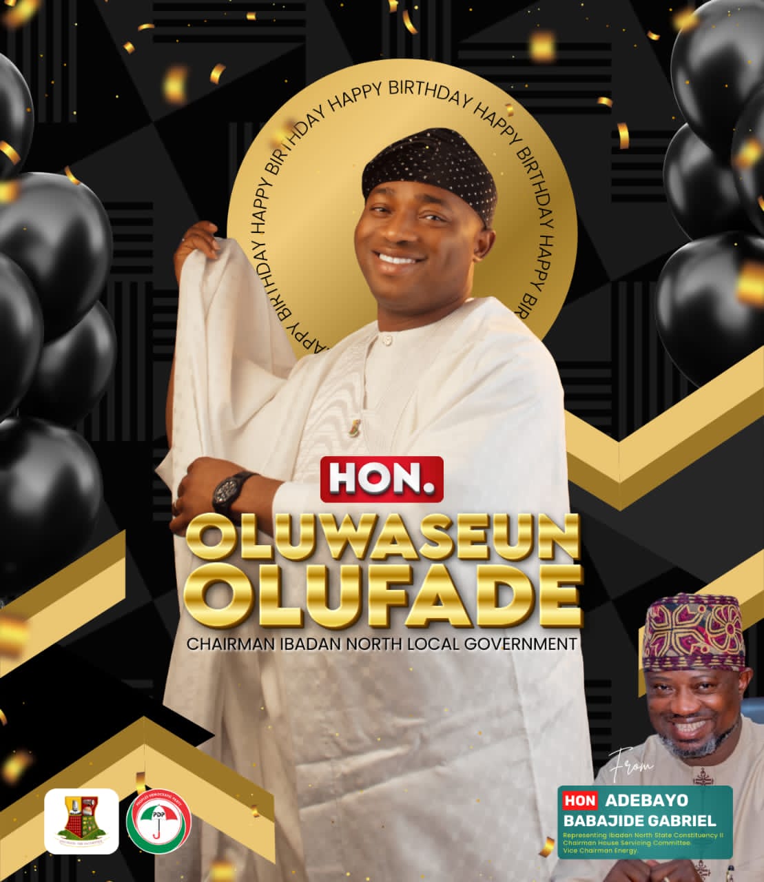 The Executive Chairman of Ibadan North Local Government, Hon. Oluwaseun Olufade, has today been joyfully celebrated by well-wishers, colleagues, and friends as he clocks another remarkable year on earth.