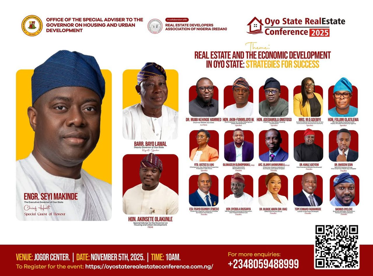 The Oyo State Government, in collaboration with the Real Estate Developers Association of Nigeria (REDAN), Oyo State Chapter, is set to host the Oyo State Real Estate Conference 2025, a major event aimed at driving innovation, urban development, and sustainable growth in the state’s property sector.