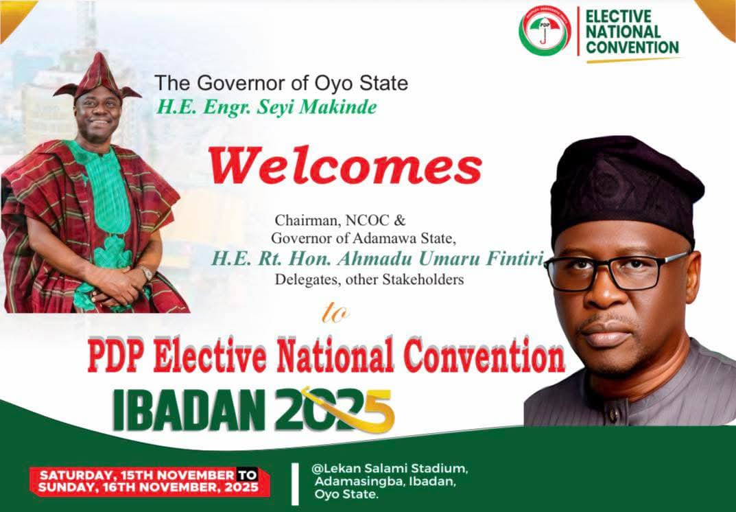 The National Working Committee (NWC) and the 2025 National Convention Organizing Committee (NCOC) of the Peoples Democratic Party (PDP) informs all party members and the general public that the 2025 National Convention of the PDP has not been postponed but will go on as scheduled on Saturday, 15th to Sunday, 16th November, 2025 in Ibadan, the Oyo State capital.