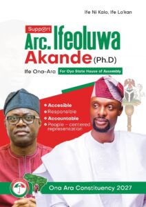 Ona Ara Local Government witnessed a remarkable political moment as a massive crowd gathered to witness the official declaration of Arc. Ifeoluwa Akande (PhD), popularly known as Ife Ona-Ara, for the Oyo State House of Assembly seat ahead of the 2027 general elections.