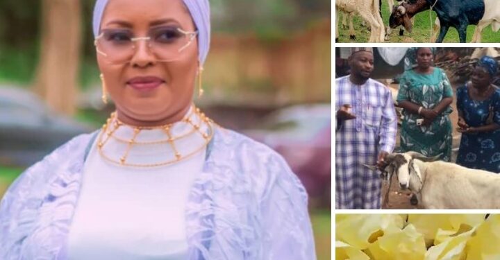 She expressed her gratitude to the Almighty by the distribution of rams,cow meat,food items and cash to Islamic leaders,Muslim faithful and different vulnerable groups from the 33 local governments of the state.