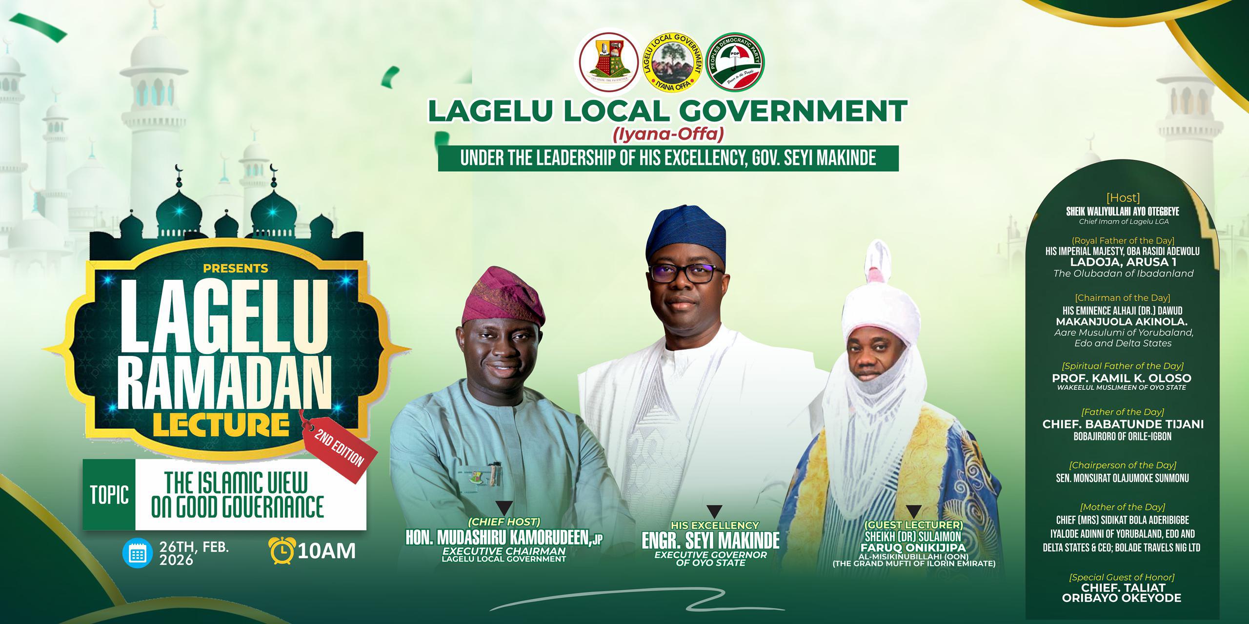 The Executive Chairman of Lagelu Local Government, Hon. Mudashiru Kamorudeen, has warmly invited residents of Lagelu, members of the Peoples Democratic Party (PDP), and the general public across Oyo State to attend the 2nd Edition of the Lagelu Ramadan Lecture.