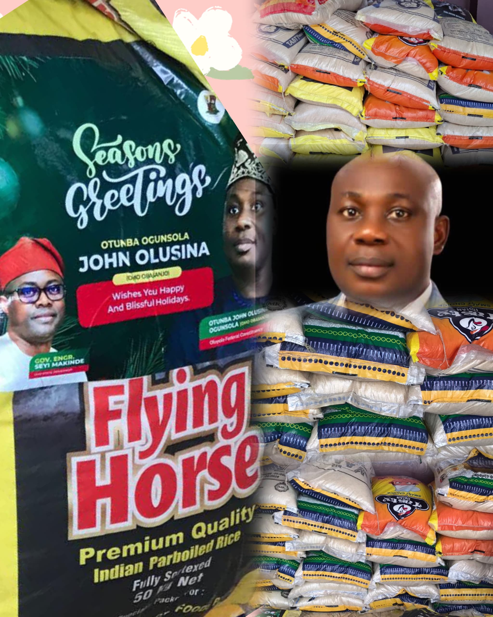In the spirit of the Yuletide season and in further demonstration of his commitment to the welfare of the people, the House of Representatives aspirant for Oluyole Federal Constituency, **Hon. Olusina John Ogunsola**, has distributed Christmas bags of rice and other assorted gift items to party leaders and members across **Oluyole Local Government Area**.