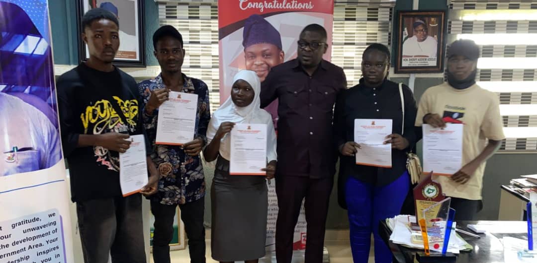 The Executive Chairman of Ido Local Government, Hon. Sheriff Aderemi Adeojo has presented admission letters to six indigents students who got scholarship award to study for their first degree in Abiola Ajimobi Technical University, Ibadan. The scholarship beneficiaries are;