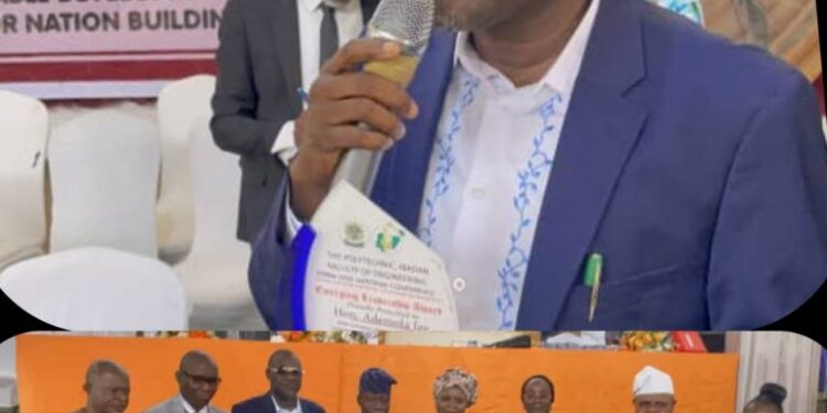 The Emerging Leadership Award presented to Hon. Ademola Ige by the Deputy Rector, Victor Omololu Olunloyo Polytechnic, Princess Olaide Salami in the presence of the Acting Rector, Dr. Taiwo Lasisi read thus; “with immense admiration, the Faculty of Engineering, the Polytechnic, Ibadan celebrates your dynamic leadership journey marked by passion, purpose and progressive impact, this award honours your inspiring rise in public service, your dedication to community advancement and your unwavering drive to build a better future through youthful engagement and innovation. Conferred at the STEEM 2025 National Conference.”