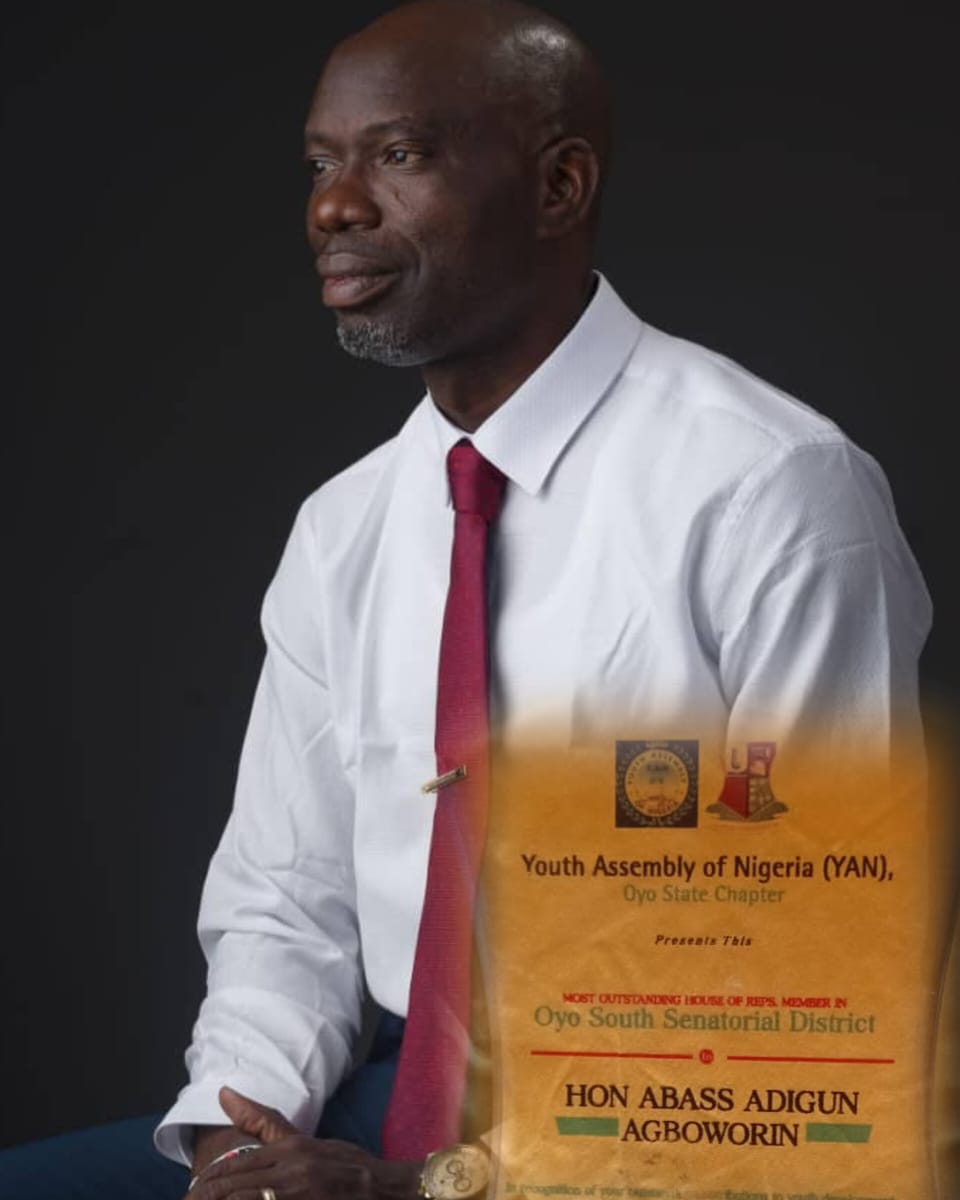 The Youth Assembly of Nigeria (YAN), has named Rep. Abass Adigun Agboworin, member representing Ibadan North-East/South-East Federal Constituency, as the Most Outstanding House of Representatives Member in Oyo South Senatorial District, Oyo State.
